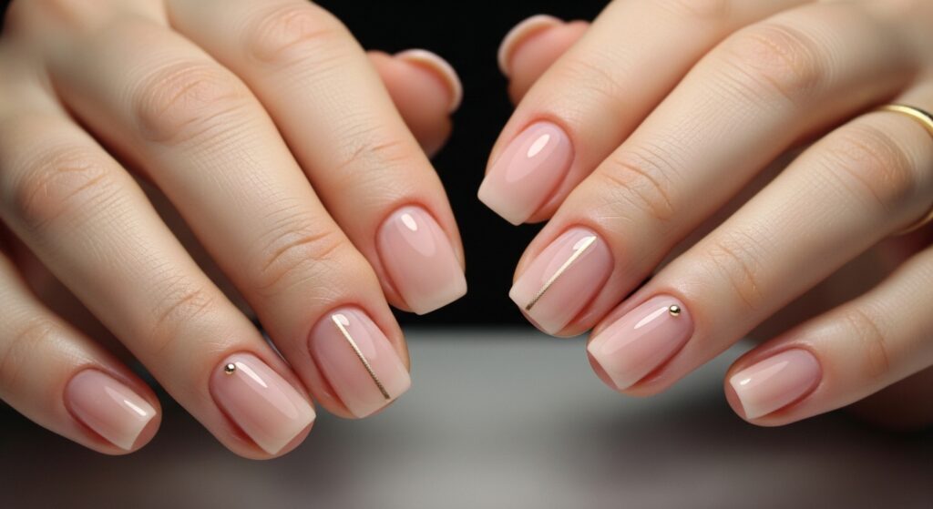 A simple nail design can include one accent nail. You can keep all nails in one soft color and add a tiny sparkle or a small detail on one finger. This keeps the design simple but visually interesting.